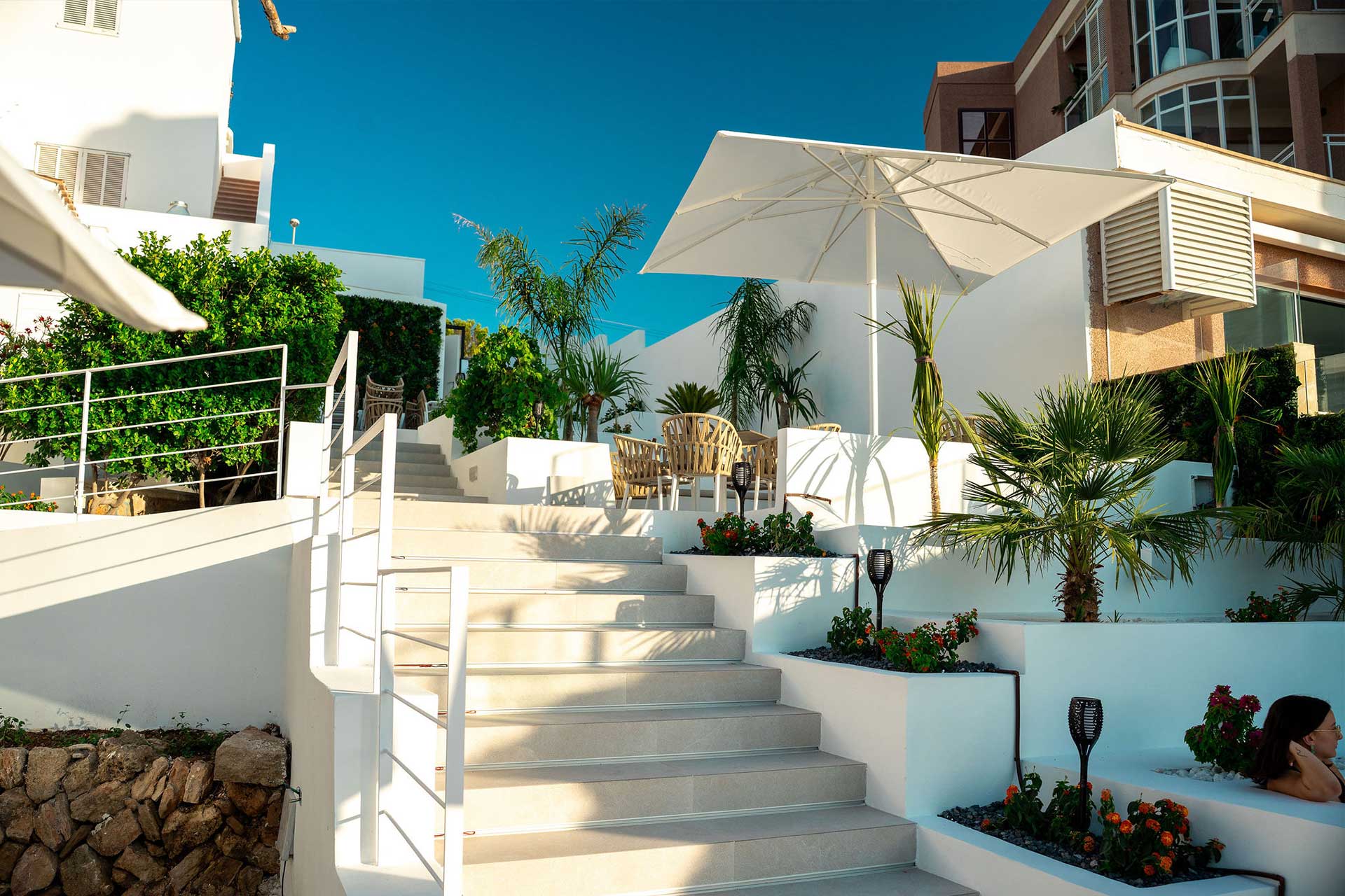 Nuestro espacio no solo respira mar, también se viste de color. Entre jardines mediterráneos y acogedores rincones chill out bajo la sombra, encontrarás el lugar ideal para relajarte, leer un buen libro o saborear un cóctel al ritmo de las olas.